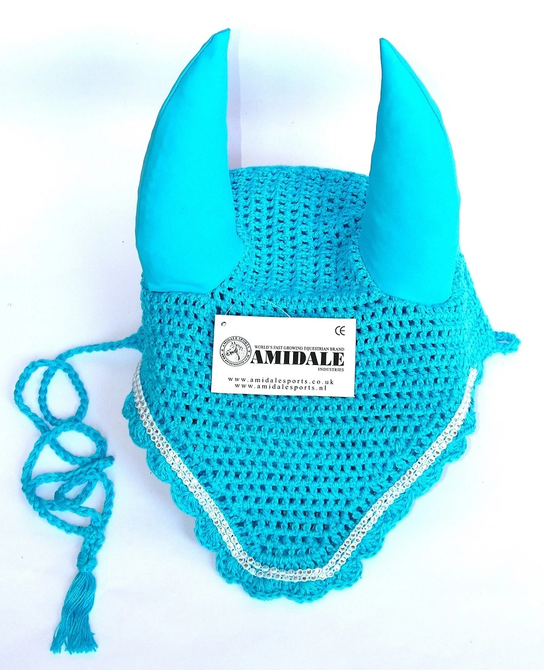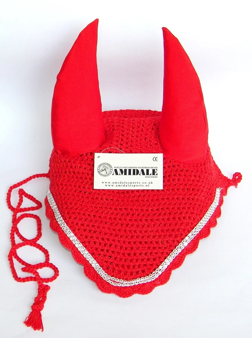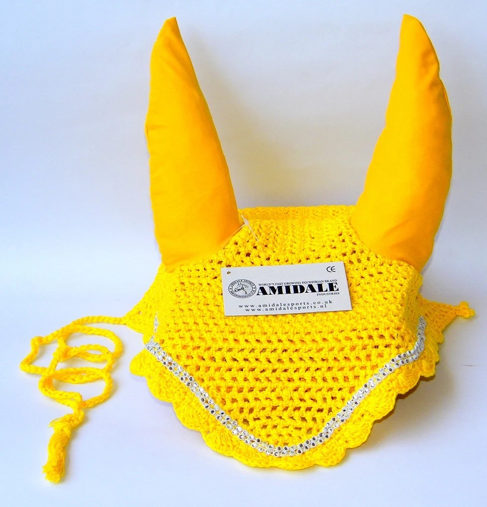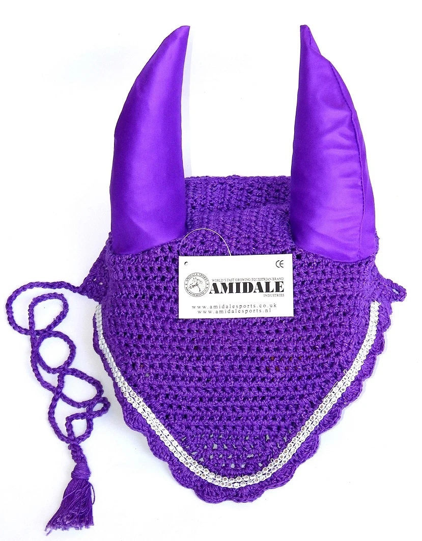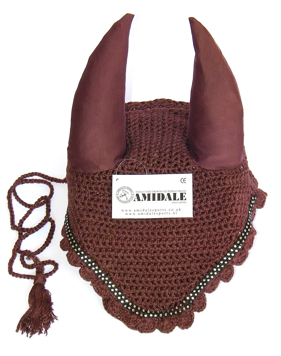 EAR NET FLY VEIL CROCHET 13 COLORS WITH CRYSTALS HORSE RIDING FULL PONY COB