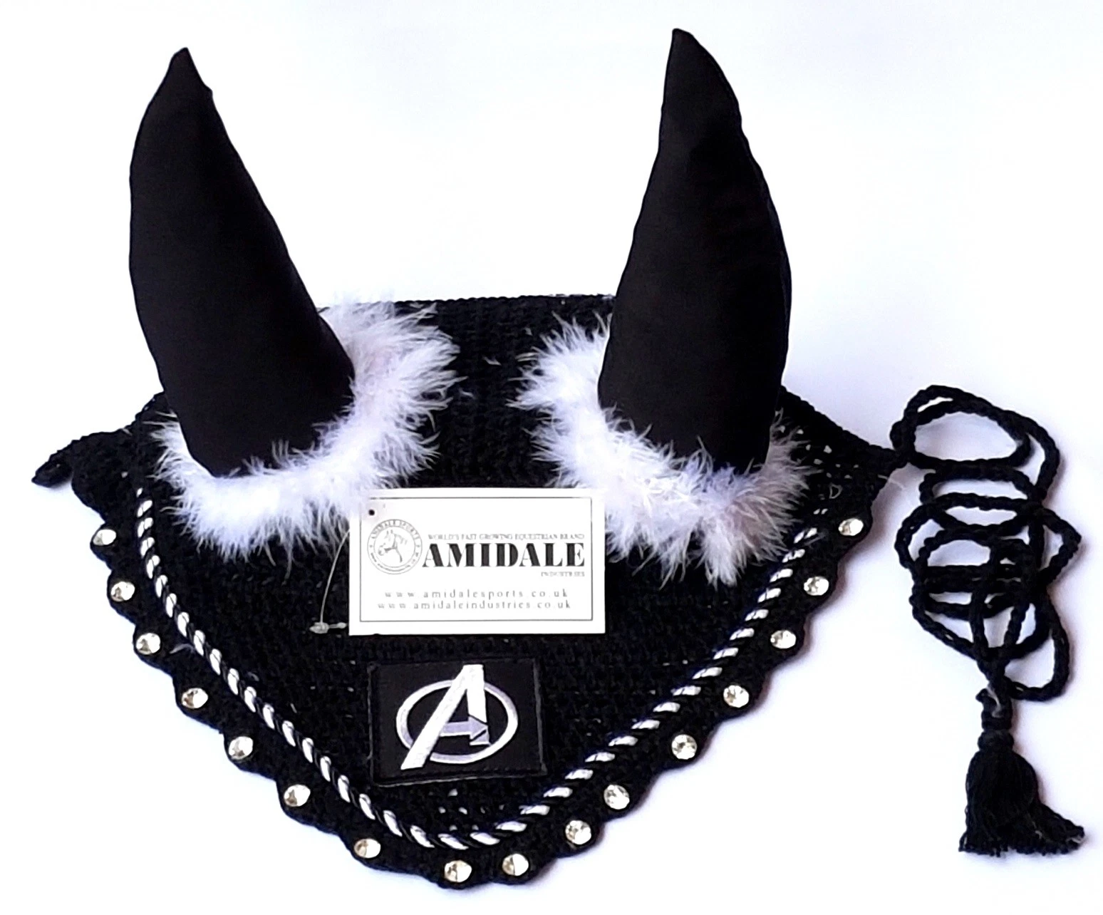 FLY VEIL EAR NET AVENGER EMBROIDERY DESIGN HORSE EQUESTRIAN DIAMANTE BNWT