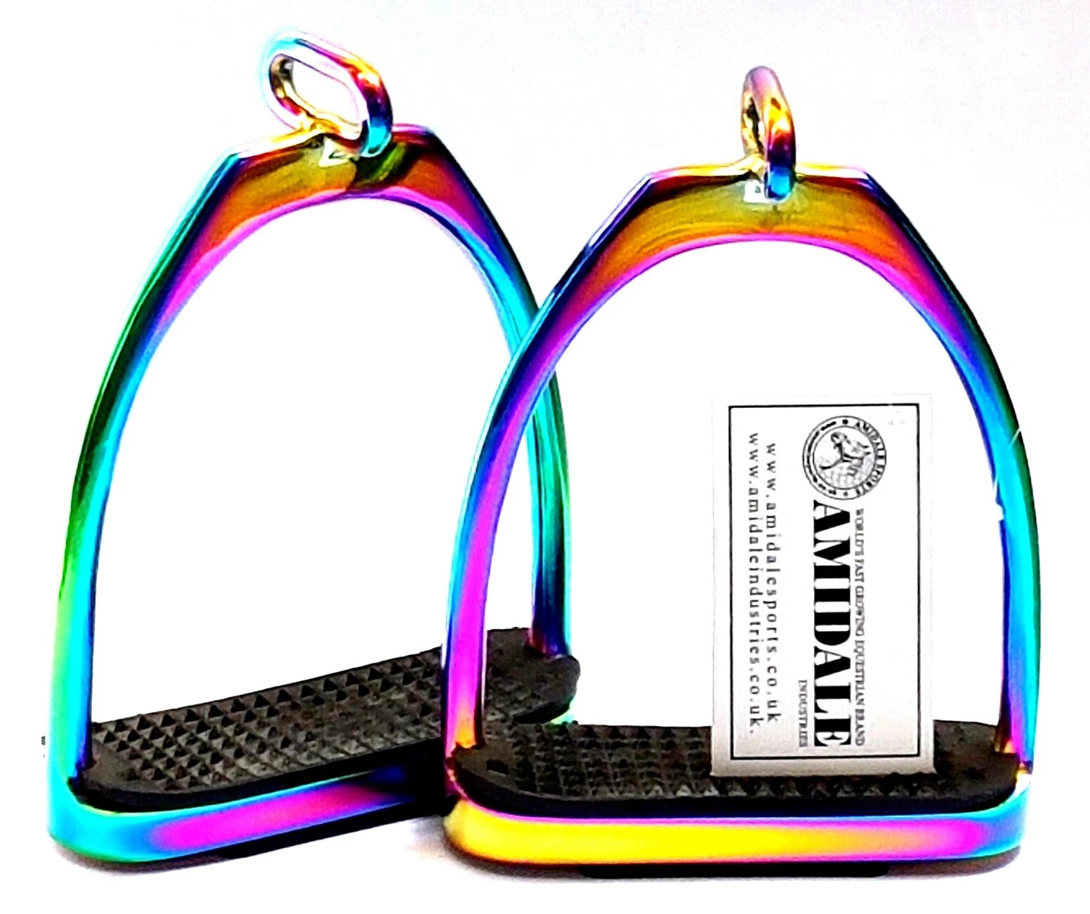 RAINBOW GLOSS Offset Simple S.Steel Fillis IRONS STIRRUPS HORSE RIDING BNWT
